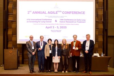 งานประชุมวิชาการนานาชาติ AGILEᴰˣᴿˣ2025 ครั้งนี้ มีความมุ่งหมายในการพัฒนาการคัดกรองมะเร็งปอดให้สามารถไปใช้ได้จริงอย่างมีประสิทธิภาพ โดยการตรวจทรวงอกด้วยเครื่องเอกซเรย์ปริมาณรังสีต่ำ (Low Dose Computerized Tomography-LDCT) เพื่อตรวจพบมะเร็งปอด โรคหลอดเลือดหัวใจ (Cardiovascular Disease-CVD) และโรคปอดอุดกั้นเรื้อรัง (Chronic Obstructive Pulmonary Disease-COPD) ในระยะเริ่มแรก ซึ่งทั้งสามโรคนี้เป็นสาเหตุการเสียชีวิตหลักของประชากรทั่วโลกและพบได้บ่อยมากขึ้นในผู้ที่สูบบุหรี่ ดังนั้นการตรวจทรวงอกด้วย LDCT จะเป็นแนวทางที่ดีแบบบูรณาการในการดูแลกลุ่มผู้ที่มีความเสี่ยงสูงจากการสูบบุหรี่ นอกจากนี้ ยังมีการประยุกต์นำเทคโนโลยีและนวัตกรรมต่างๆ เช่น การใช้ปัญญาประดิษฐ์ (AI) มาใช้ประกอบการคัดกรองและดูแลรักษาผู้ป่วยให้มีประสิทธิภาพ รวมทั้งมีความคุ้มค่าและสามารถนำไปใช้ได้ในสถานการณ์ต่างๆ ในแต่ละบริบทของแต่ละประเทศ อีกทั้งมีการแลกเปลี่ยนองค์ความรู้จากผู้เชี่ยวชาญจากนานาประเทศ
