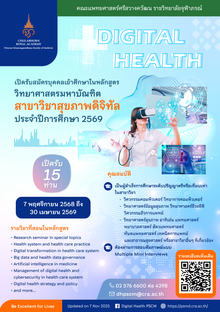 หลักสูตรวิทยาศาสตรมหาบัณฑิต สาขาวิชาสุขภาพดิจิทัล (หลักสูตรใหม่ พ.ศ. ๒๕๖๕) Click