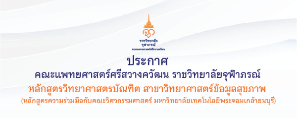 ประกาศรายชื่อผู้มีสิทธิ์สอบสัมภาษณ์เพื่อคัดเลือกบุคคลเข้าศึกษา หลักสูตรวิทยาศาสตรบัณฑิต สาขาวิทยาศาสตร์ข้อมูลสุขภาพ คณะแพทยศาสตร์ศรีสวางควัฒน ราชวิทยาลัยจุฬาภรณ์ รอบที่ 2 รอบโควตา ประจำปีการศึกษา 2568 Nipapat Worawat 2025-04-23T15:33:14+07:00 April 23rd, 2025|Read More